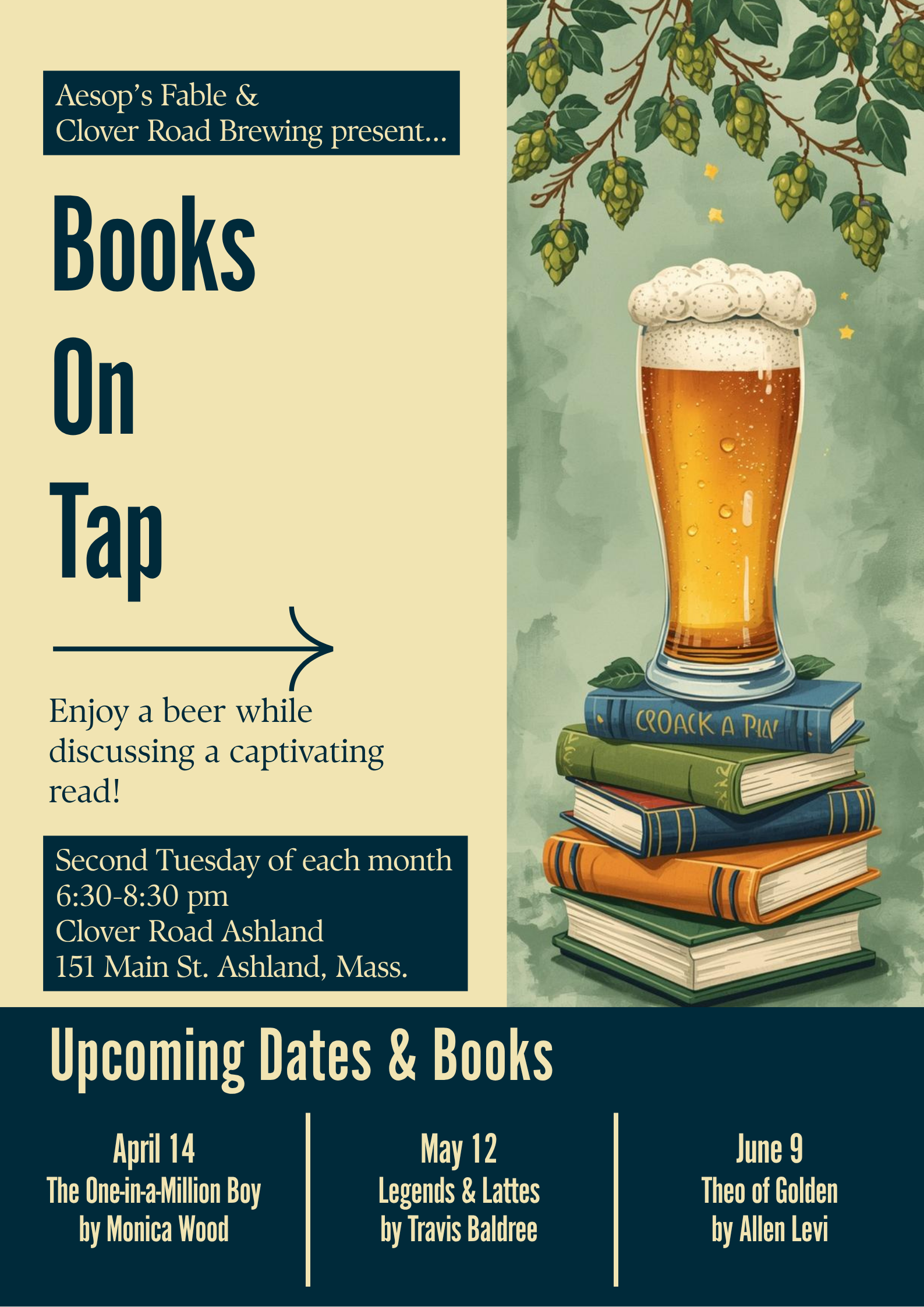 Join our monthly book club with Aesop’s Fable, and enjoy some tasty beverages while discussing the latest captivating read!