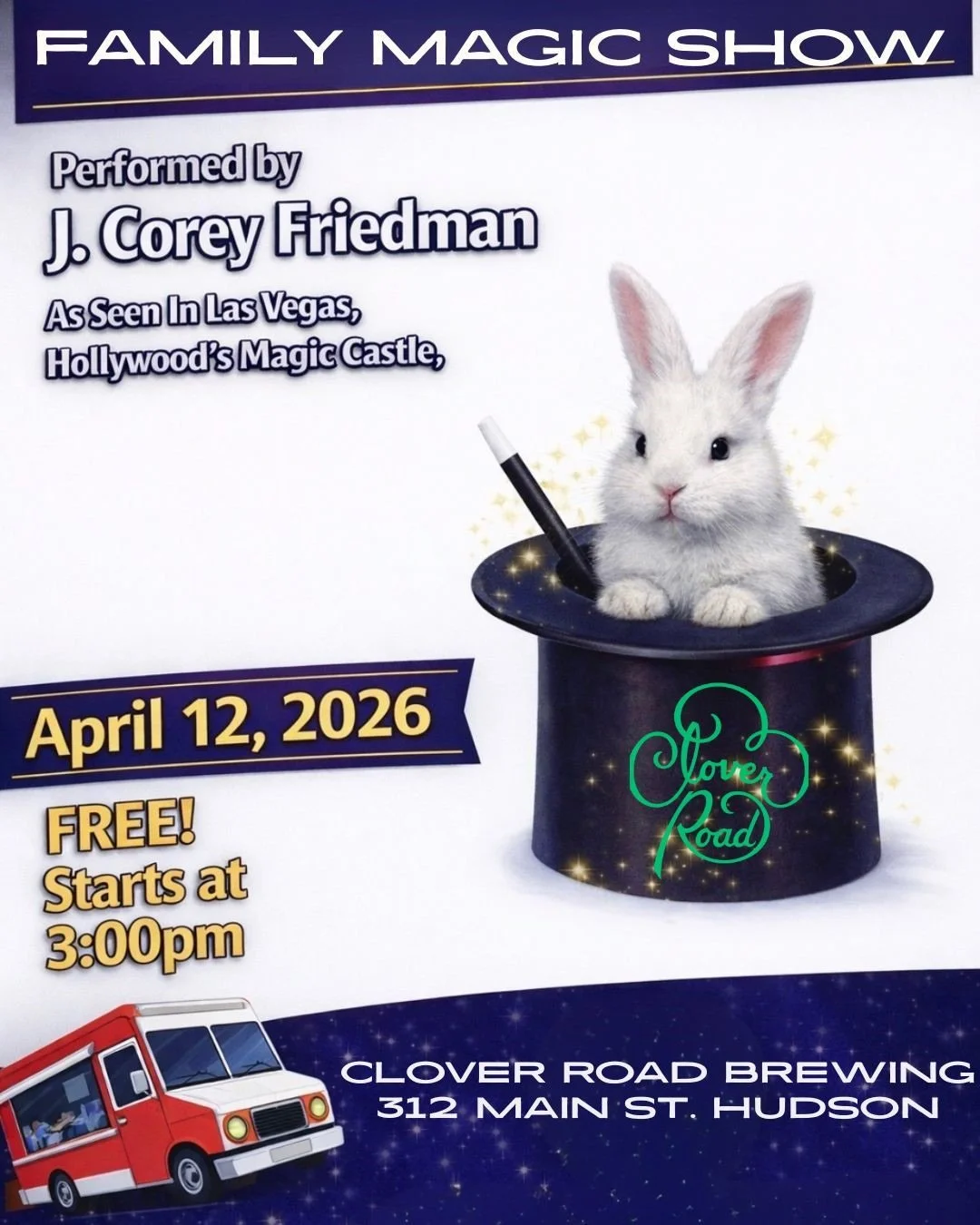 Looking for something fun to do with the family? Join us on Sunday, April 12th at 3PM for an afternoon of laughs, surprises, and a little bit of magic!