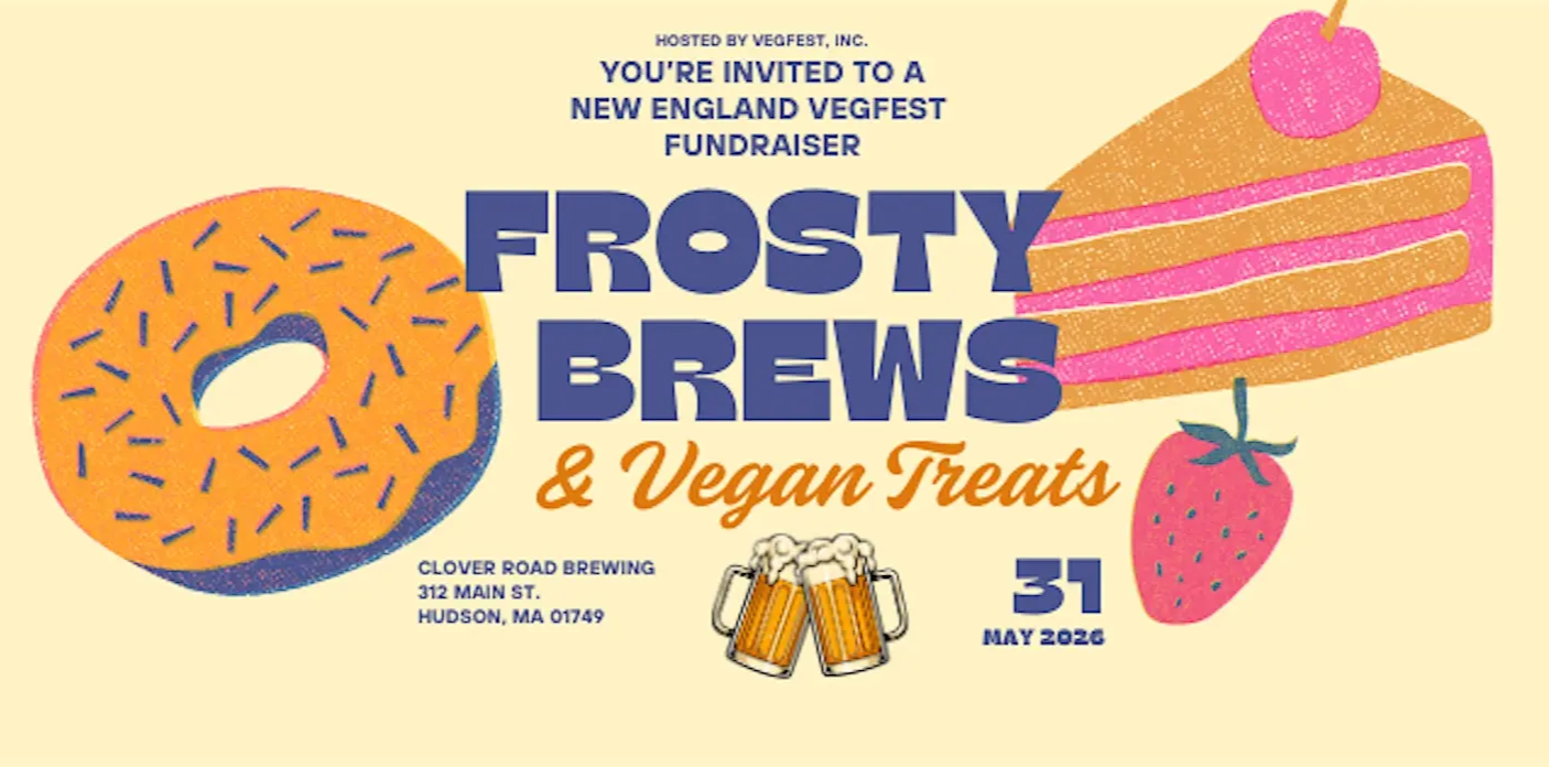 Join us for FROSTY BREWS & VEGAN TREATS, a Fundraiser for VegFest, at Clover Road Brewing Company - Sunday, May 31st 2026, 1pm~4pm!